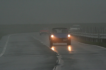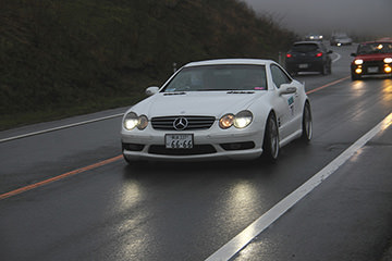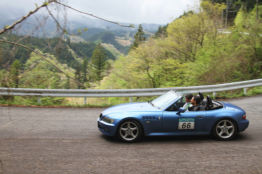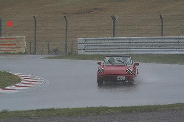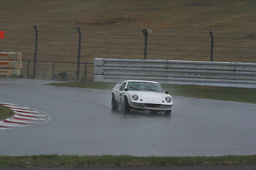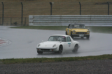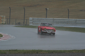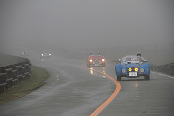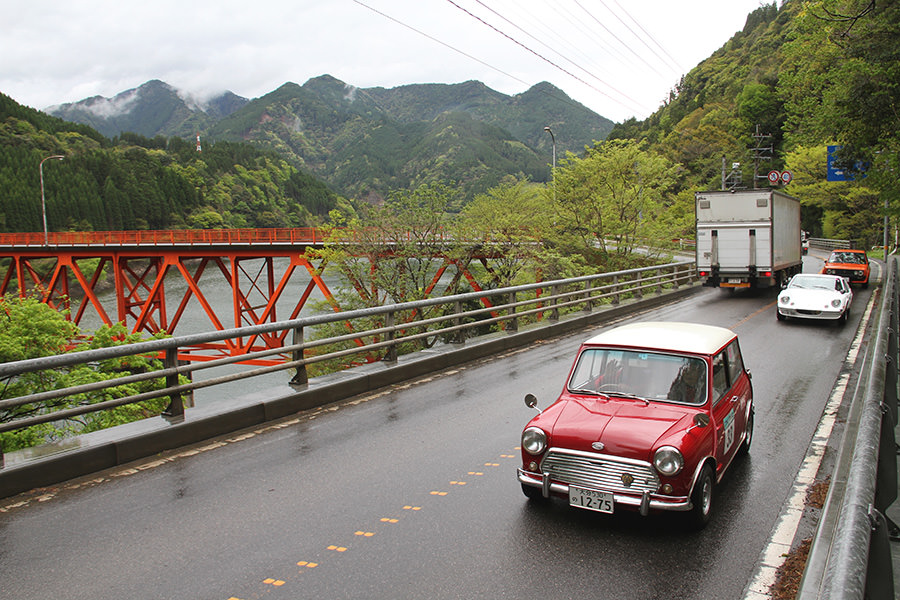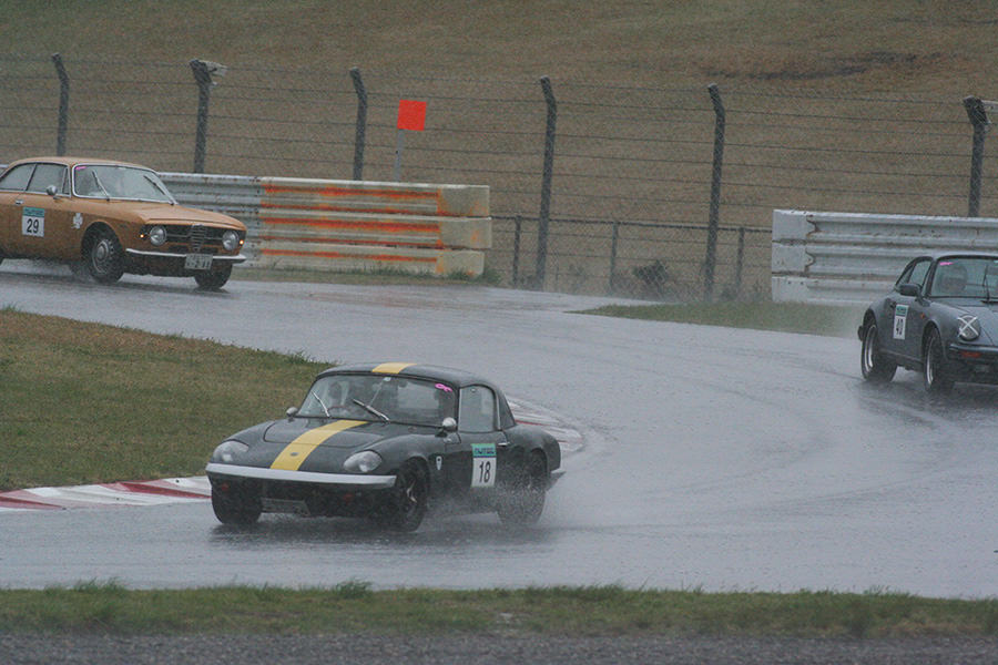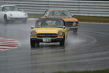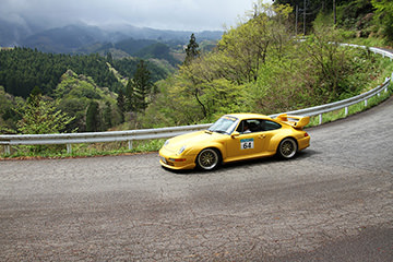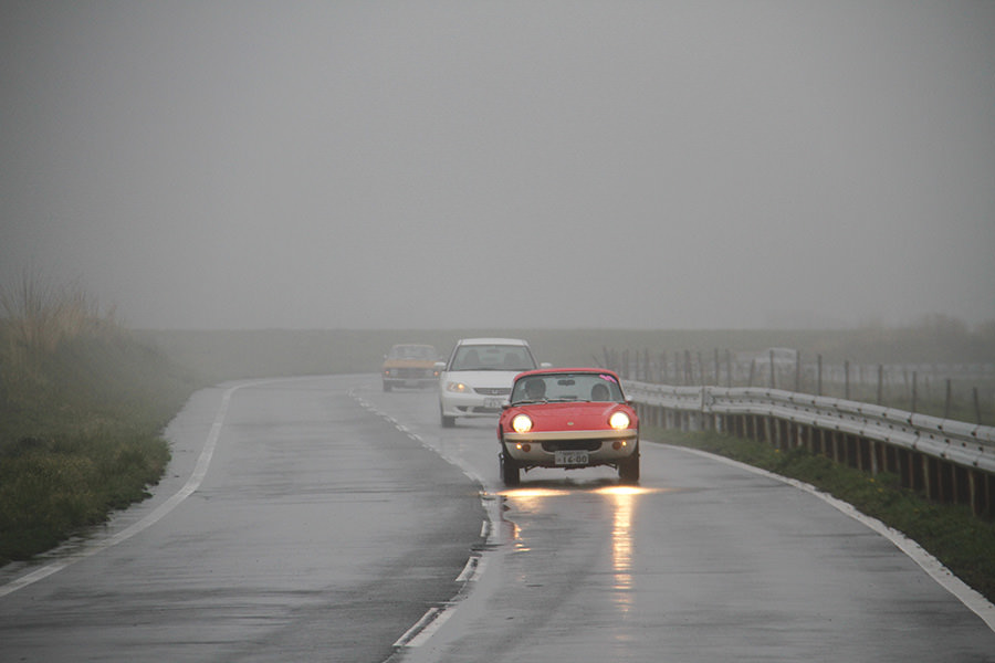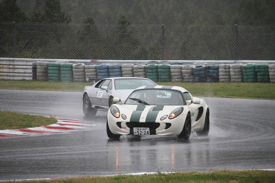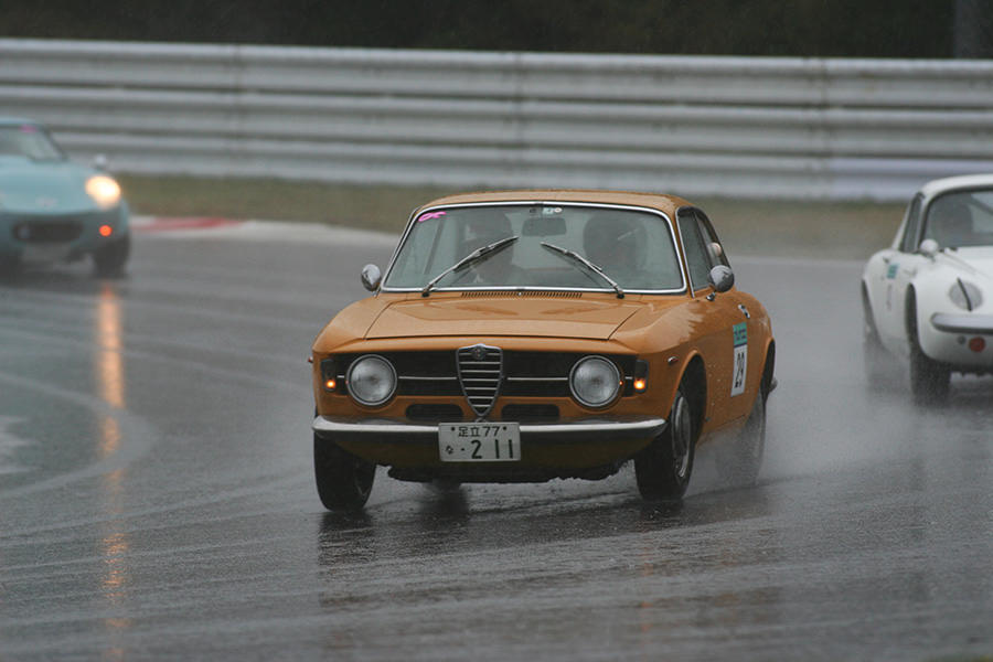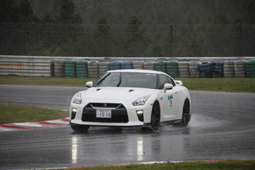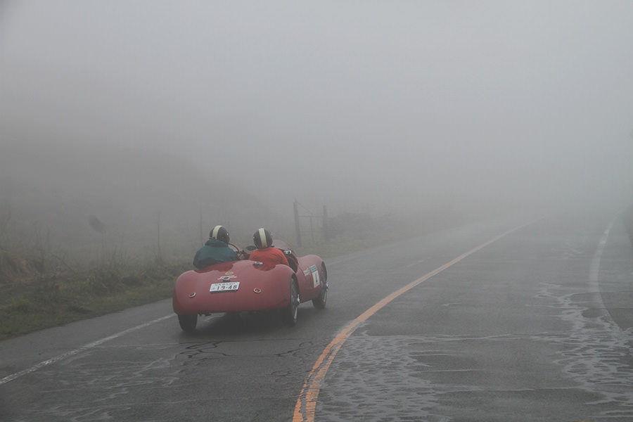 今回のスペシャルステージは上津江町のオートポリスが設定されました。F1にも対応できる国際格式サーキットをヒストリックカーが走る姿が期待されましたが……。参加者が到着するころには暴風雨状態となっており、任意で走行することとなりました。レースであれば中止となるほどの多量の雨水が流れるコースを走るのは貴重な体験。ハラハラドキドキ、皆安全最優先で走行を楽しみました。