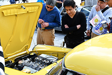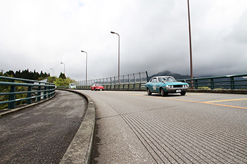 「やまと文化の森」から、さらに西に20kmほど、美里町の道の駅「佐俣の湯」に立ち寄ります。ここも湯どころ、そして宿泊も可能な施設として、立ち寄るだけでは勿体無い場所です。コテージもあり、ゆったり泊まってみたい参加者も多かったのではないでしょうか。地元のギャラリーも珍しい車に興味津々でした。さて、残すはゴールの三角西港のみとなりました。気を引き締めて無事にゴールできるよう安全運転で向かいます。