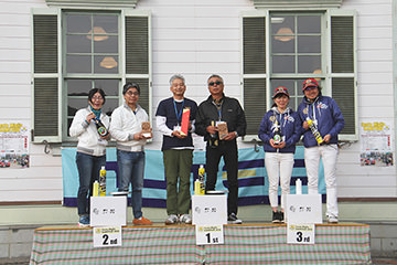 南阿蘇村から、さらに南東に進み、宮崎県境を超えた五ヶ瀬町のワイナリーへ。高地にあり見晴らしが素晴らしく、ちょうど天候もスッカリ回復し、景色が楽しめました。スタンプポイントでは、「五ヶ瀬はちみつぶどう地サイダー」がプレゼントされ、さらにショップでワインを買い込む参加者の姿も多く見られました。次はお待ちかねのランチポイントへ~。