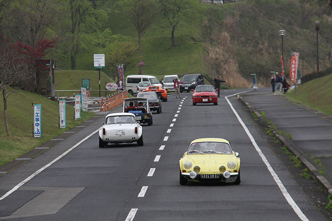 パトリア日田・中央公園の特設会場を各車スタート。走行距離約320kmという道のりを2日間に渡り走行します。