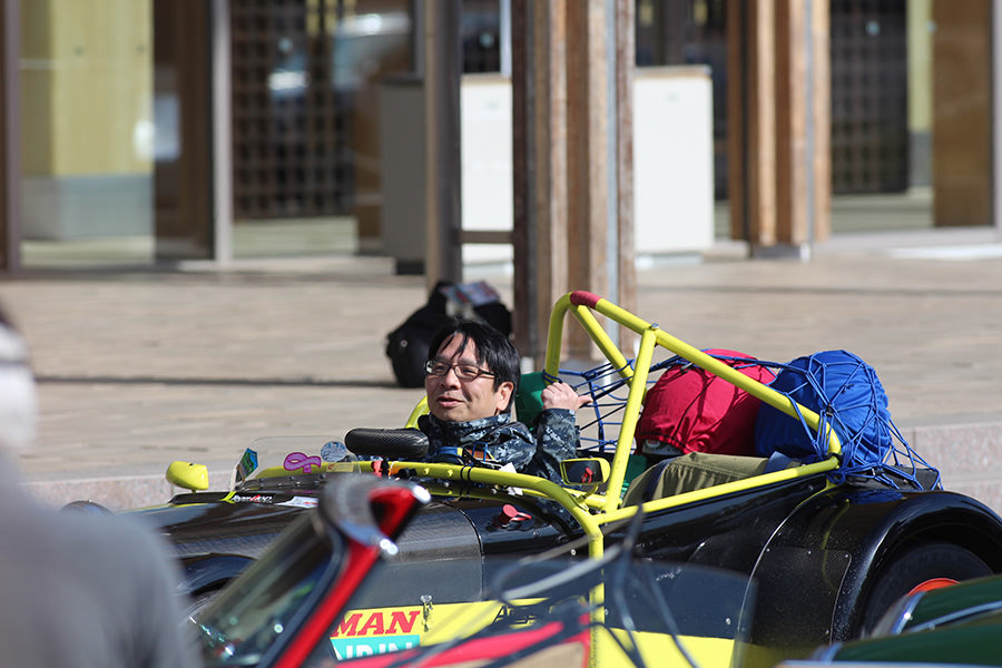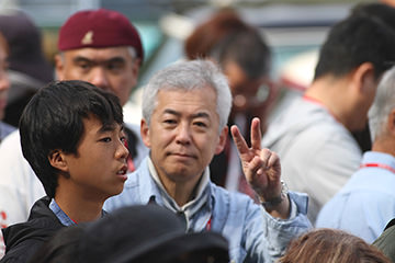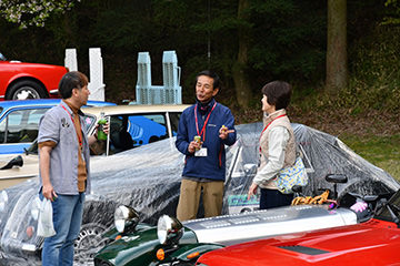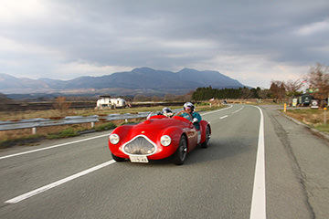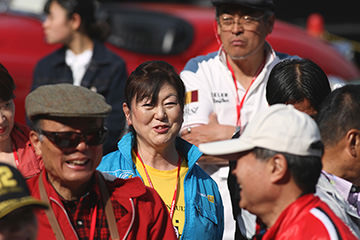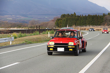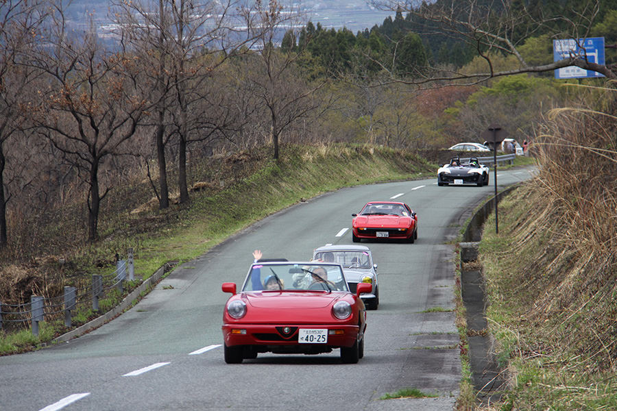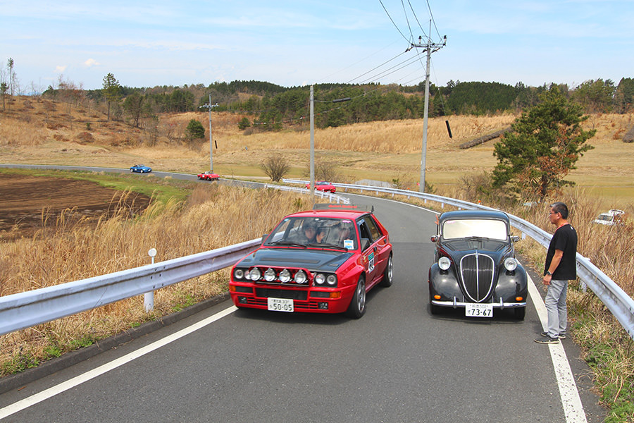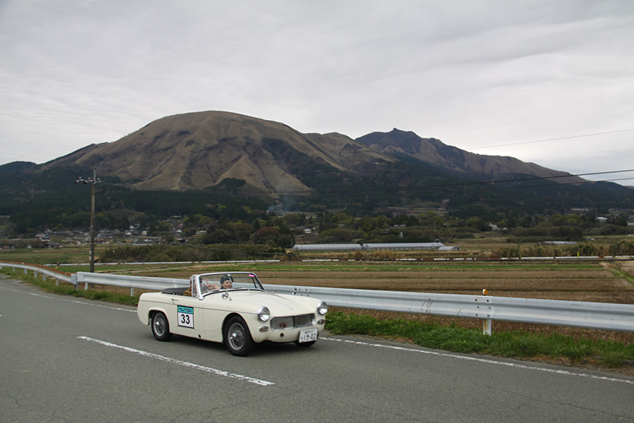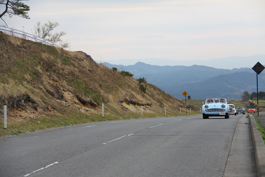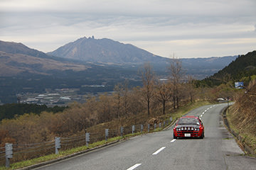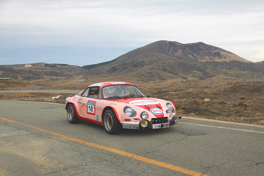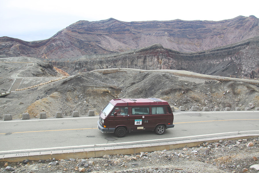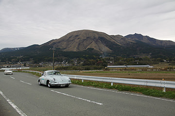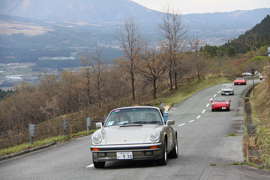 一夜明けて、チェント・ミリア最終日がやってきました。ゆったりとホテルの朝食をいただき、チェックアウト。駐車場にて、ドライバーズブリーフィングがスタートしました。前日からこの日最初のチェックポイントである「阿蘇中岳火口」に行けるかどうかという判断を待っている状態でした。そして朝を迎えたタイミングで無事OKの連絡が!1時間ごとに刻々と状況が変わる火口の様子にスタッフもドキドキでした。 阿蘇リゾートグランヴィリオホテルのエントランス前では、ホテルスタッフがお見送りをしてくださいました。他の宿泊客の方々も、駐車場にやってきて、貴重で珍しいクルマたちを見学している姿が印象的でした。