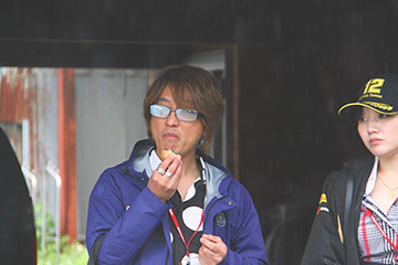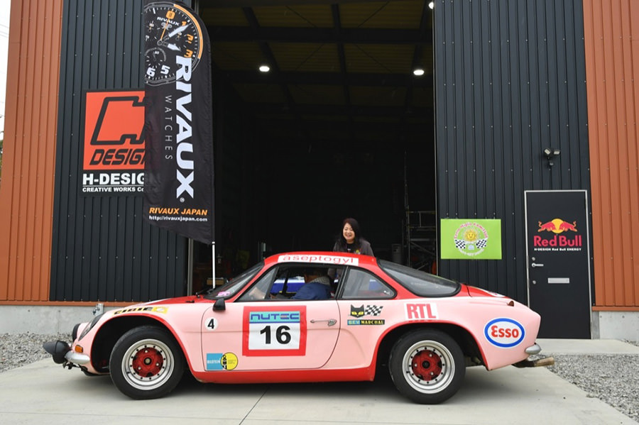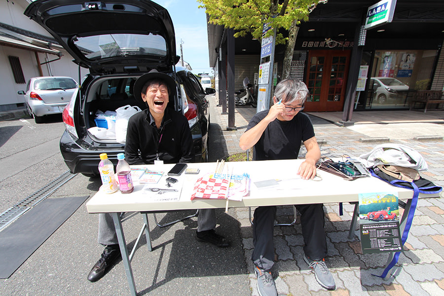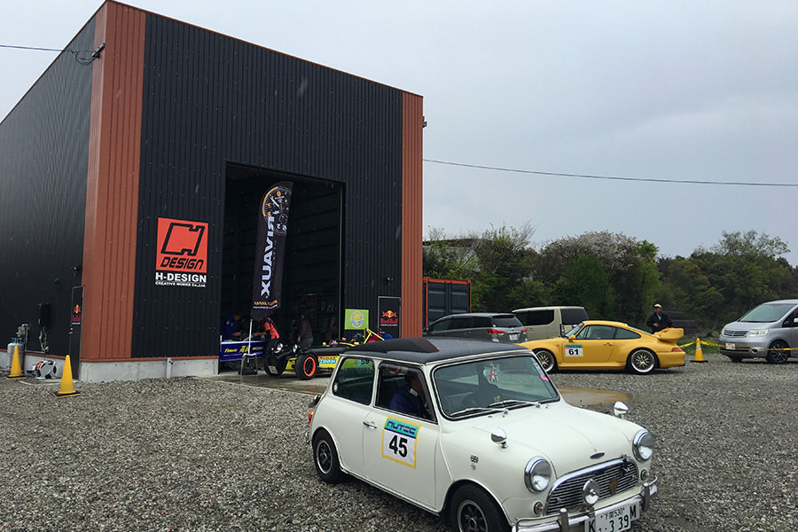 次なるチェックポイント、進路を北西にとり向かうは大津町の「エイチデザイン&アール・エス・シー」。HSRサーキットの目の前にあるファクトリーがスタンプポイントで、全日本ロードレースへ参戦中の現役若手ライダーが参加者を待ち受けます。途中、雨足が強まり到着するころには本降りとなっていましたが、これもチェント・ミリアです。参加者は雨も楽しみながら、次のポイントを目指します。
