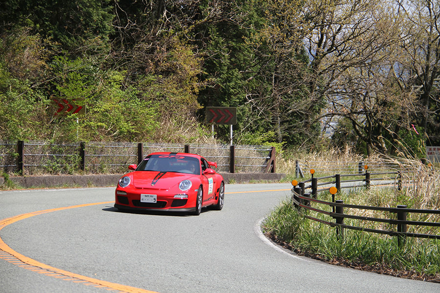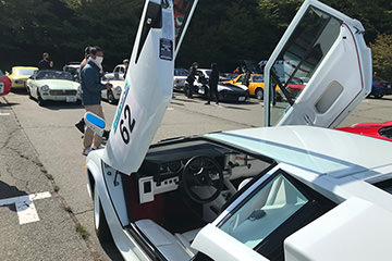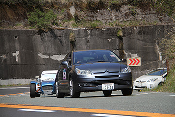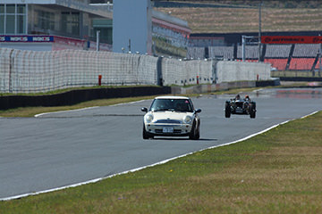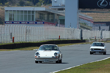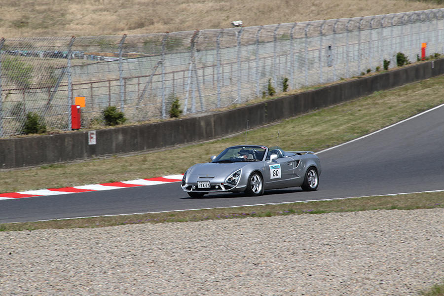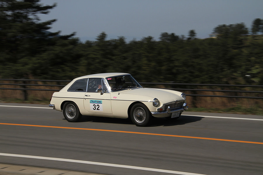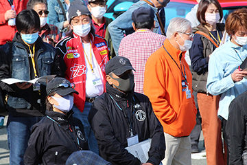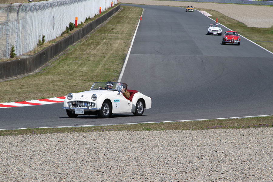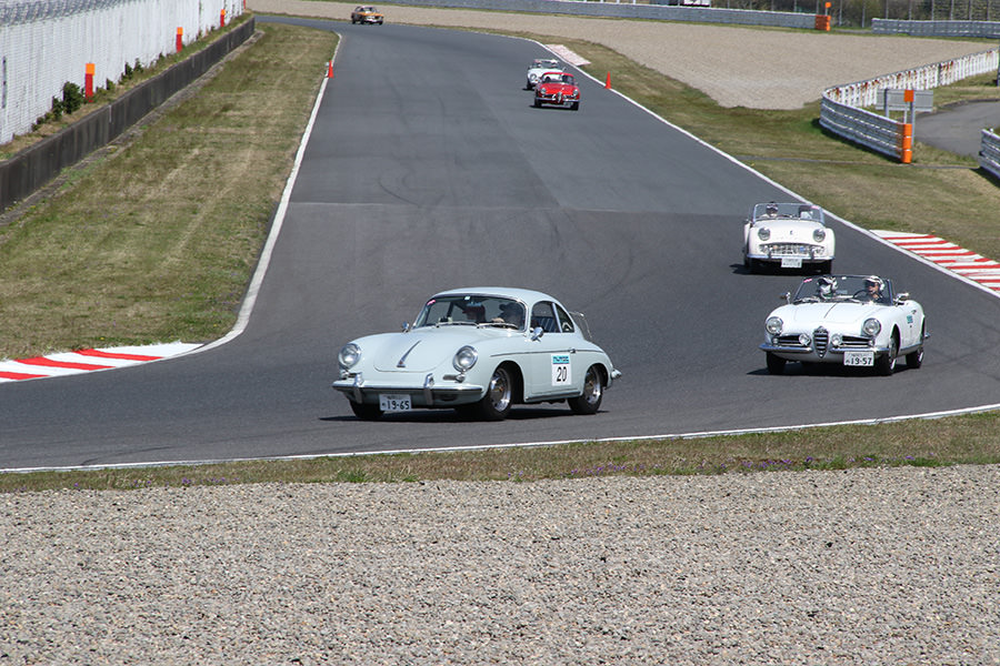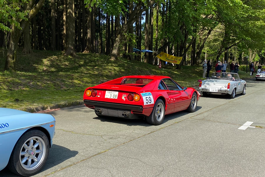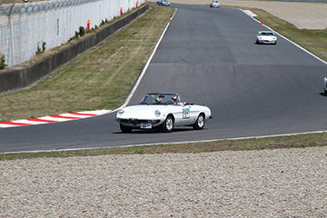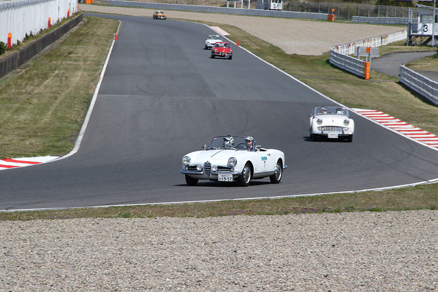 今年のスペシャルステージは、例年とは違いインターナショナルレーシングコースの一部、約1,400mを50km/hで走行するというもの。各エントラントがオートポリスに到着しピットロードに並ぶと、数十秒おきにコースインしていきます。計測ポイントでは、タイミングとライン取りを考えながら慎重にドライブ。走行会で来場していた一般の方々も希少な名車たちのサーキット走行に目を輝かせていました。