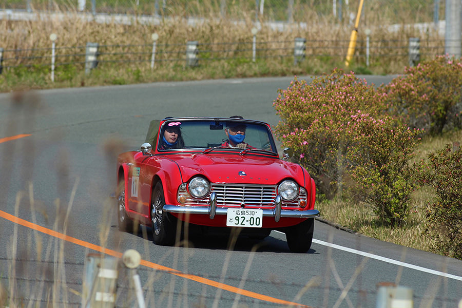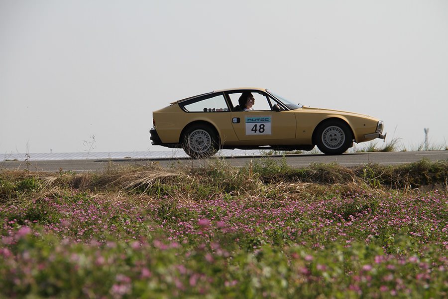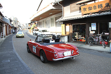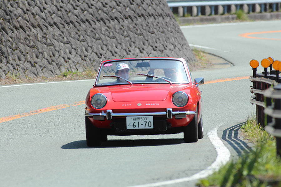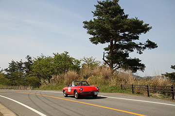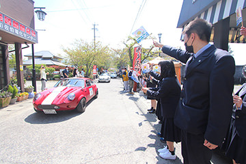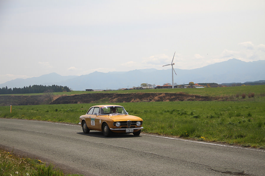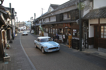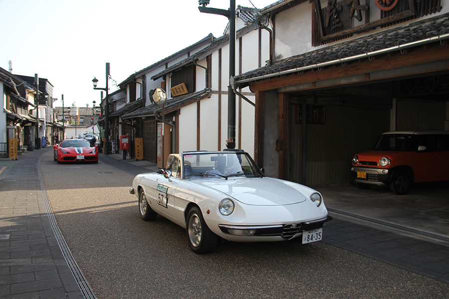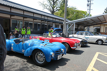 熊本地震により甚大な被害を受けた阿蘇神社の社殿は一歩ずつ復旧が進んでいて、痛々しい爪痕は日に日に薄れ、阿蘇一の宮門前町商店街においては活気と本来のパワーを取り戻していました。今回素晴らしかったのは、阿蘇中央高等学校ビジネス科の生徒さん達にチェント・ミリアスタンプポイントの準備、運営に参加していただいたことです。明るく溌剌とした高校生スタッフは、エントラントやわれわれスタッフに大いに元気を分けてくれました。参加者、見学の方々に落ち着いて丁寧に接する様子には本当に感心しました。参道に佇むクラシックな名車たちと歴史ある商店街の街並みが想定を上回る魅力を放っていました。商店街、阿蘇中央高校の皆さん、ありがとうございました。