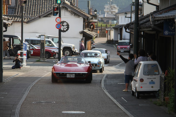 今年は日帰りイベントとなりましたが、ルートを無事に走り切ったゴールでは少し感傷的になります。豊前街道、山鹿市は大昔からモノや人、文化の交流点であり、古いスタイルと新しい潮流の出会いの場所でありました。そんな山鹿市を象徴する歴史を感じる芝居小屋“八千代座”をゴールとさせていただいていること、またゴールの運営に地元有志の方々の温かいご協力があることはチェント・ミリアの一つの誇りとなっています。八千代座への曲がり角で、到着する参加車両をギャラリーの人達と見守っていた時、偶然居合わせた年配のご婦人が「懐かしいわ」と呟いているのが聴こえました。