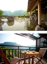 ワンランク上の宿泊施設や食事にとどまらず国内屈指のゴルフコースも有名な阿蘇を代表するホテルリゾートです。雄大な阿蘇外輪山の景色を眺めながらのウエディングもひそかな魅力のひとつ。源泉掛け流し露天風呂「米塚温泉きごころの湯」&スパにはエステやマッサージ、カラオケルーム、岩盤浴なども充実し、女性にも人気のスポットとなっています。