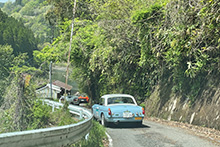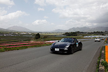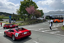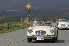 竹田市直入近辺には、ドライブで素通りしてしまうには惜しい観光、景観スポットが少なからずあります。清らかな湧水、温泉や滝など自然の素晴らしさを楽しむことができます。恵まれた環境の山里、標高460mに箱庭のようなきれいなサーキットSPA直入があります。普段は2輪走行が中心なので、懐かしく珍しいクラシックスポーツカーの想定外の力強い走りや音が、ライダーの方々を少年のような笑顔にしていました。