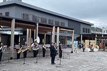 菊池の魅力を発信し賑わいを創出する拠点となっている菊池ふるさと創生市民広場がスタンプポイントです。菊池温泉源泉掛け流し足湯でドライブの疲れを癒やす人、事前に配布されたショッピングチケットを使い物産館でお土産の購入をする人など、参加者は思い思いに最後のスタンプポイントを楽しんでいました。
