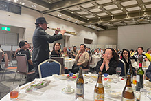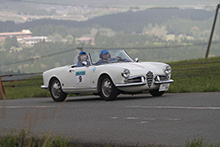 春の風や雨に冷えた身体を米塚温泉で温めたら、恒例のパーティータイム。吉良清一南阿蘇村村長の乾杯で宴が始まります。参加者全員が集う広い会場では阿蘇のグルメや生演奏が披露され、歓声が上がり笑顔が弾けます。新たなエントラントは壇上で全員に歓迎され、いっしょに走った仲間としてチェント・ミリアの輪の中に自然に溶け込み加わることができます。共通の愉しみ、共通の苦労‥クルマや人生、明日の天気など話題は尽きないでしょう。DAY1の賑やかな夜は毎年このように更けていくのでした。