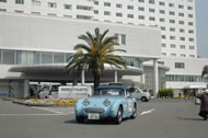 住吉浜「シュガーレイマリーン」などのルートをすべて予定通りに通過した参加チームは1日目のゴールである“別府湾ロイヤルホテル”に到着。チェックインの後、さっそく温泉でのクルマ談議が始まります。