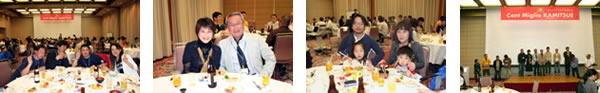 全チームが、阿蘇リゾートグランヴィリオホテルにゴールし、夜にはお楽しみの親睦パーティーが始まります。参加者代表の乾杯とともにビュッフェスタイルの食事が始まり、中でも目の前で焼いてくれる阿蘇牛のステーキが大人気でした。また女性方は充実したデザートにも大満足の様子。その後、昨年のイベント映像の放映や誕生日のお祝い、新規参加者の紹介など、盛りだくさんの催しの中、ボーナスポイントが獲得出来るゲーム大会が行われ、大いに盛り上がりました。
