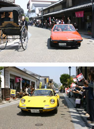 | 全出場チームが集まり車検やミーティングを終えると“日田林工高等学校吹奏楽部”約30名による歓迎セレモニーが行われます。そして参加者代表の“安全運転宣言”やサッポロビールスタッフからの“応援エール”ののち出場車両と各チームが1台ずつ紹介され、2日間・約300キロのコースにスタートしていきます。見学に来場された方々は、世界的にも希少なクルマ達が走る雄姿を身近に感じていただけることでしょう。今年は、コースを先導するマーシャルカーとして国内登場まもない新型フィアット500(チンクエチェント)が走ります。 |